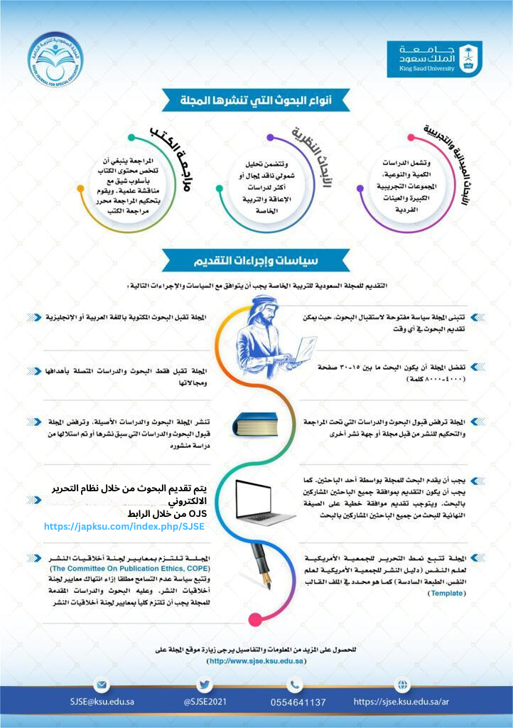 - الأبحاث النظرية: وتتضمن تحليل شمولي ناقد لمجال او أكثر لدراسات الإعاقة والتربية الخاصة.